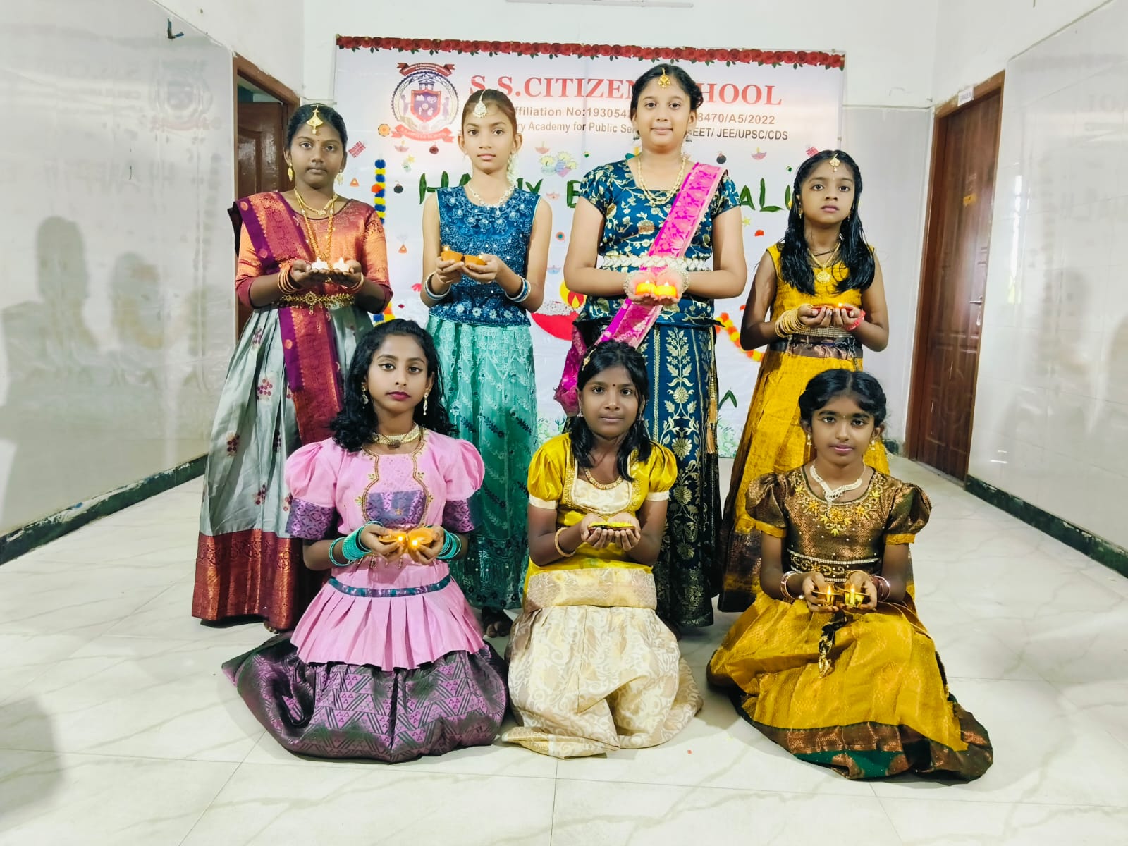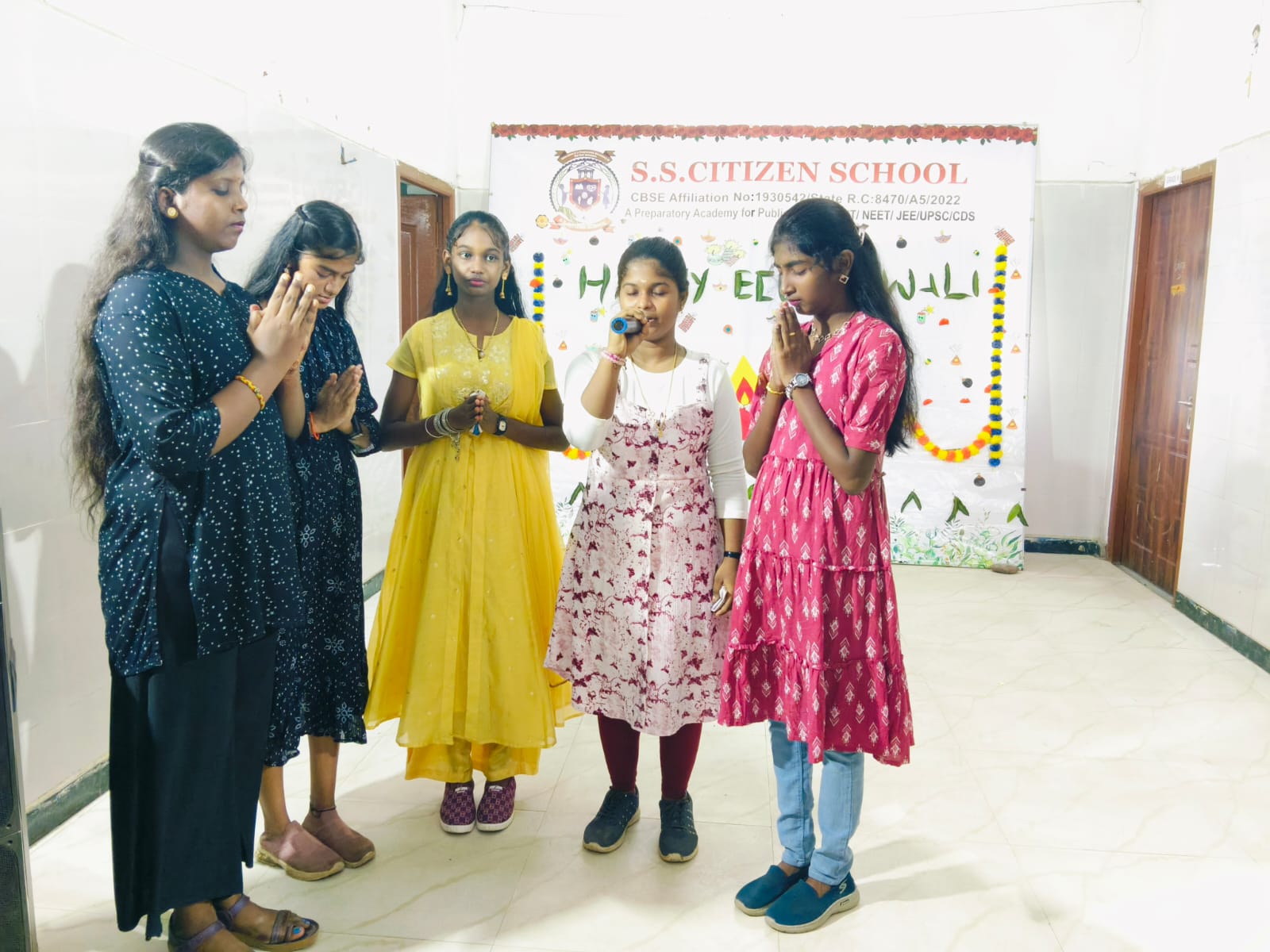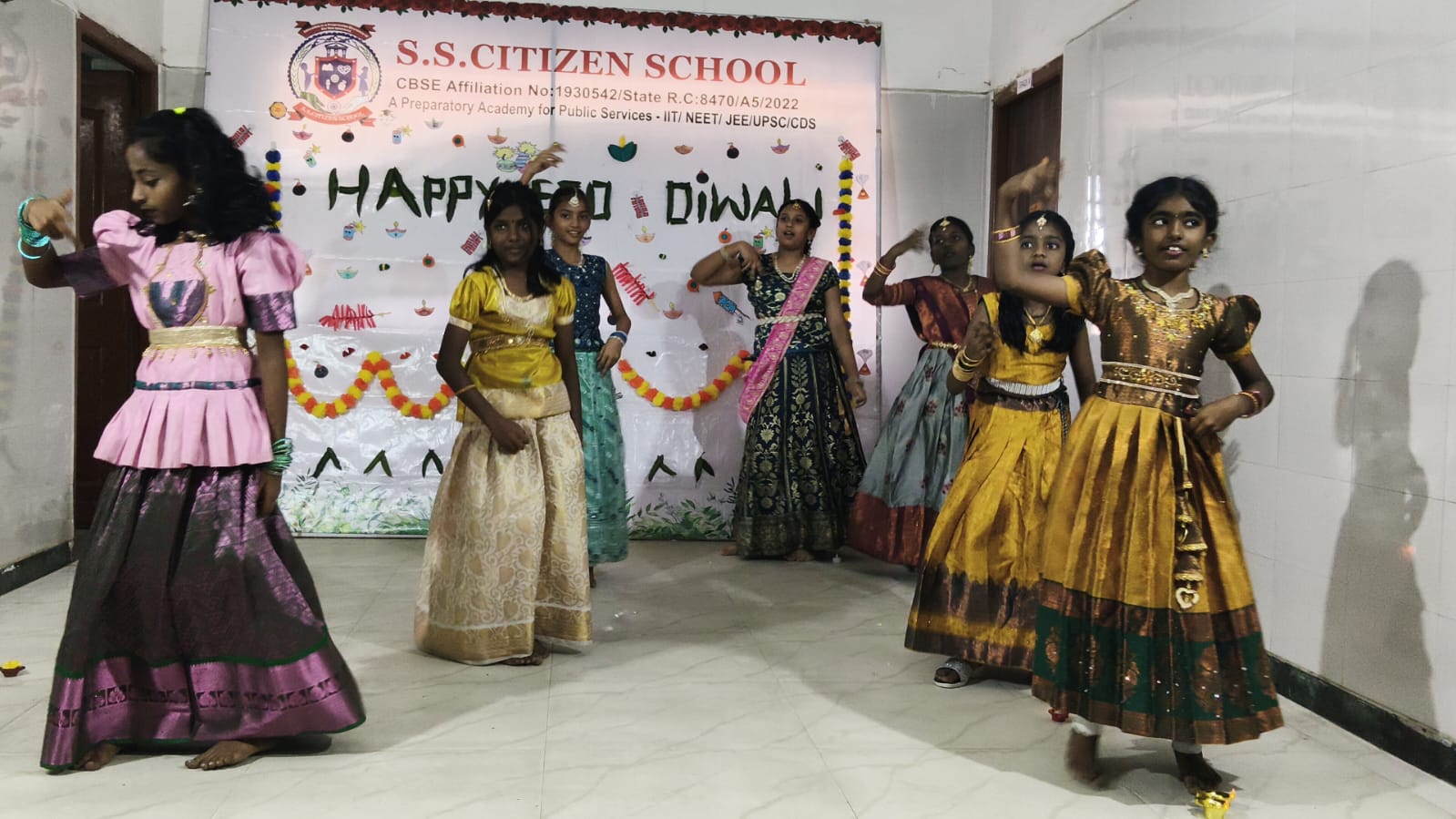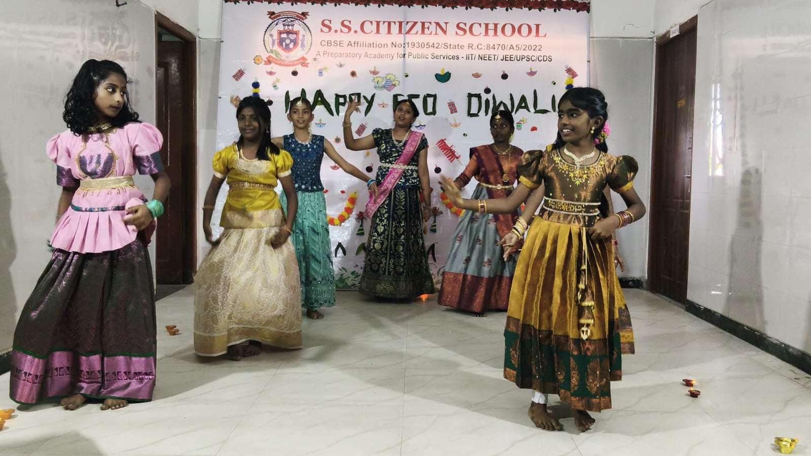 S.S.Citizen School came alive with vibrant festivities on October 17, 2025, as the entire campus united to celebrate Diwali, the Festival of Lights, with great enthusiasm and grandeur. The day was filled with fun activities, competitions, and joyous moments that brought students and staff together in the true spirit of the festival. The events start with a Devotional Song. The festive mood was amplified with mime, music, and dance performances. Students danced to the beats of lively songs, filling the air with energy and joy, while the melodious music created an atmosphere of celebration and togetherness. To add to the celebrations, a delightful array of Traditional sweets and savory dishes was arranged for everyone to enjoy. The event ended with a vote of thanks by Mrs.Janani.