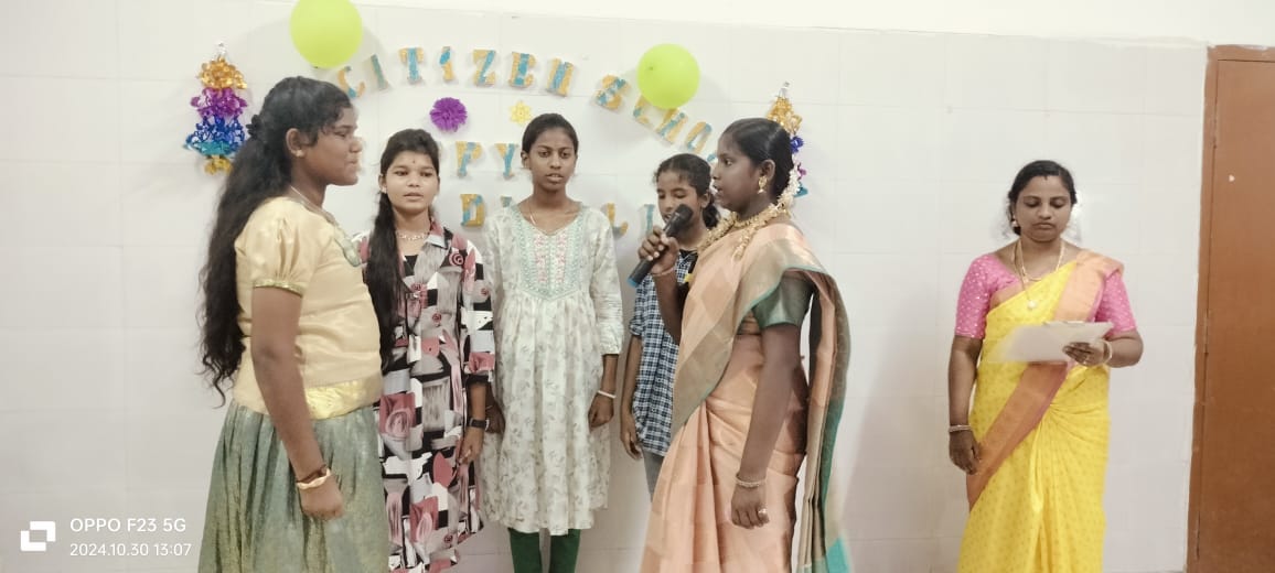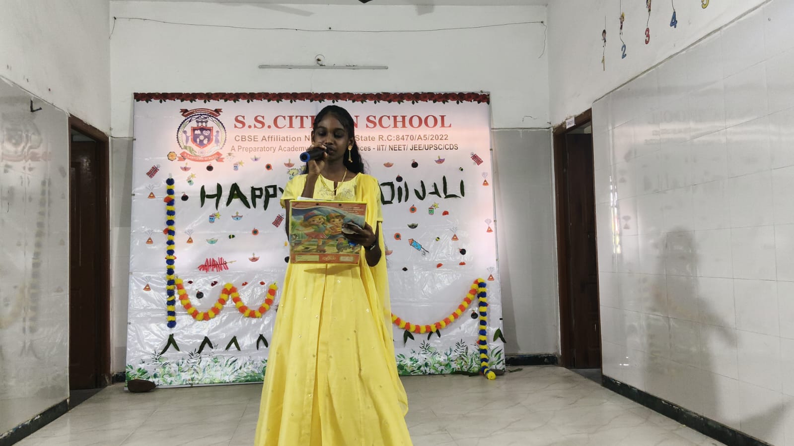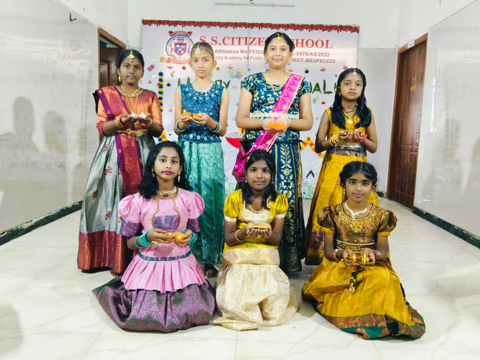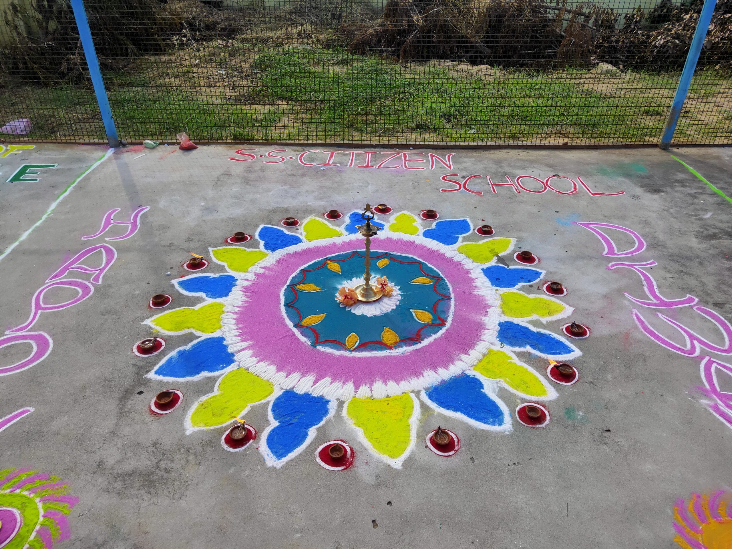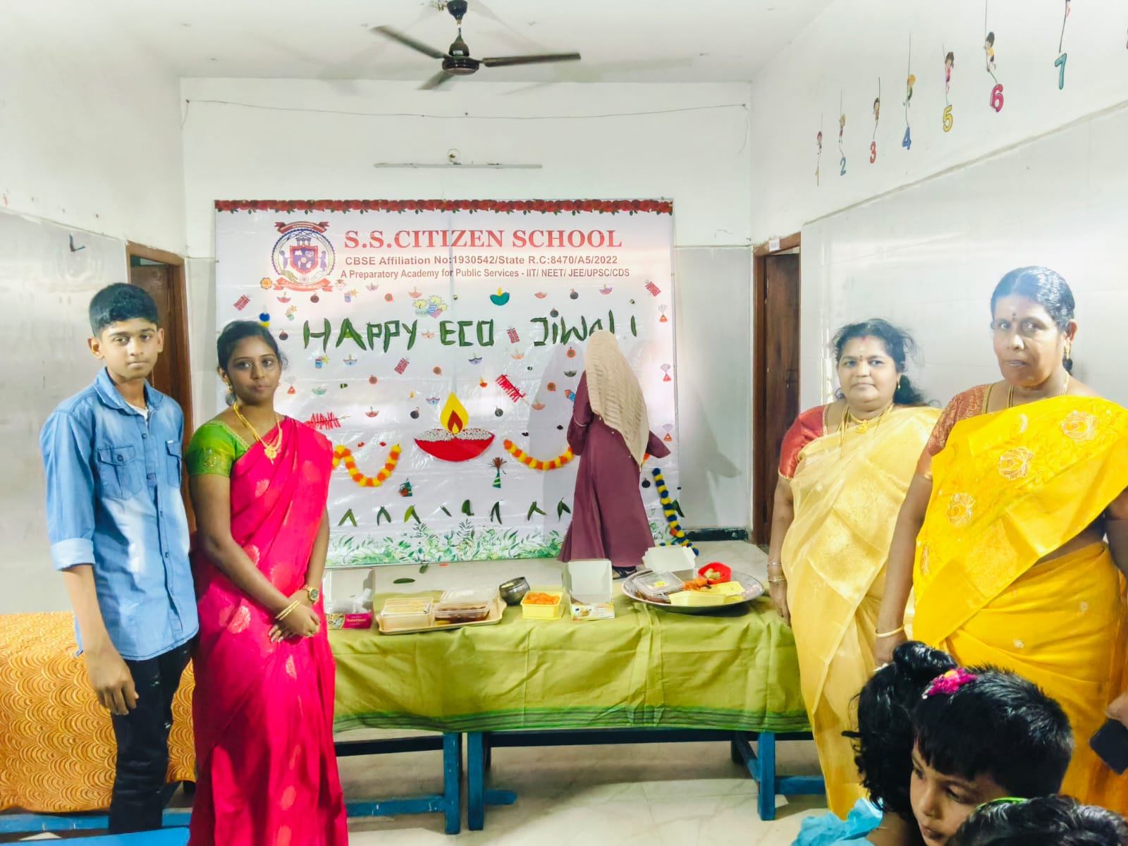 S.S.Citizen School came alive with vibrant festivities on October 17, 2025, as the entire campus united to celebrate Diwali, the Festival of Lights, with great enthusiasm and grandeur. The day was filled with fun activities, competitions, and joyous moments that brought students and staff together in the true spirit of the festival. The events start with a Devotional Song. The festive mood was amplified with mime, music, and dance performances. Students danced to the beats of lively songs, filling the air with energy and joy, while the melodious music created an atmosphere of celebration and togetherness. To add to the celebrations, a delightful array of Traditional sweets and savory dishes was arranged for everyone to enjoy. The event ended with a vote of thanks by Mrs.Janani.
