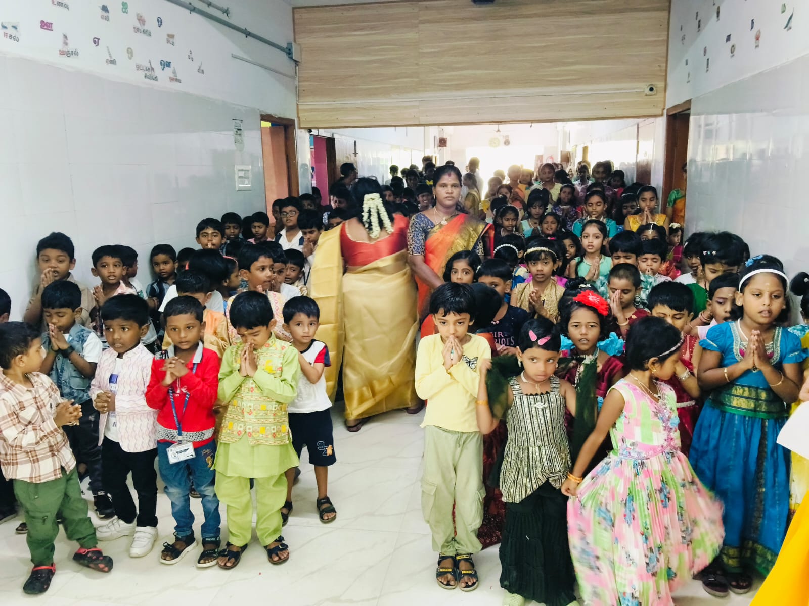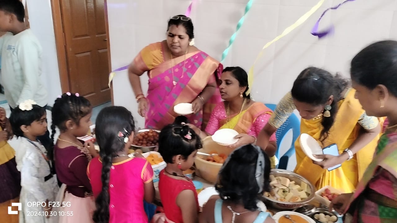 The Diwali celebration was conducted on 17th October 2025. This event begins with a devotional song by the Niranjan Class 5. TGT teacher Ms. Pavithra. The festive mood was amplified with mime, music, and dance performances. Students’ Speech on Diwali in English, Tamil, and Hindi languages. PGT teacher Mrs. Gomathy is telling a story about Diwali. Class 10th Neerthika sang a devotional song. Class 9th Students Fusion danced to the beats of lively songs, filling the air with energy and joy. The Honorable Principal and the correspondent gave a speech on Eco Diwali, its benefits for nature, and safety. The event concluded with a vote of thanks by Mrs. Janani. To add to the celebrations, a delightful array of Traditional sweets and savory dishes was arranged for everyone to enjoy.