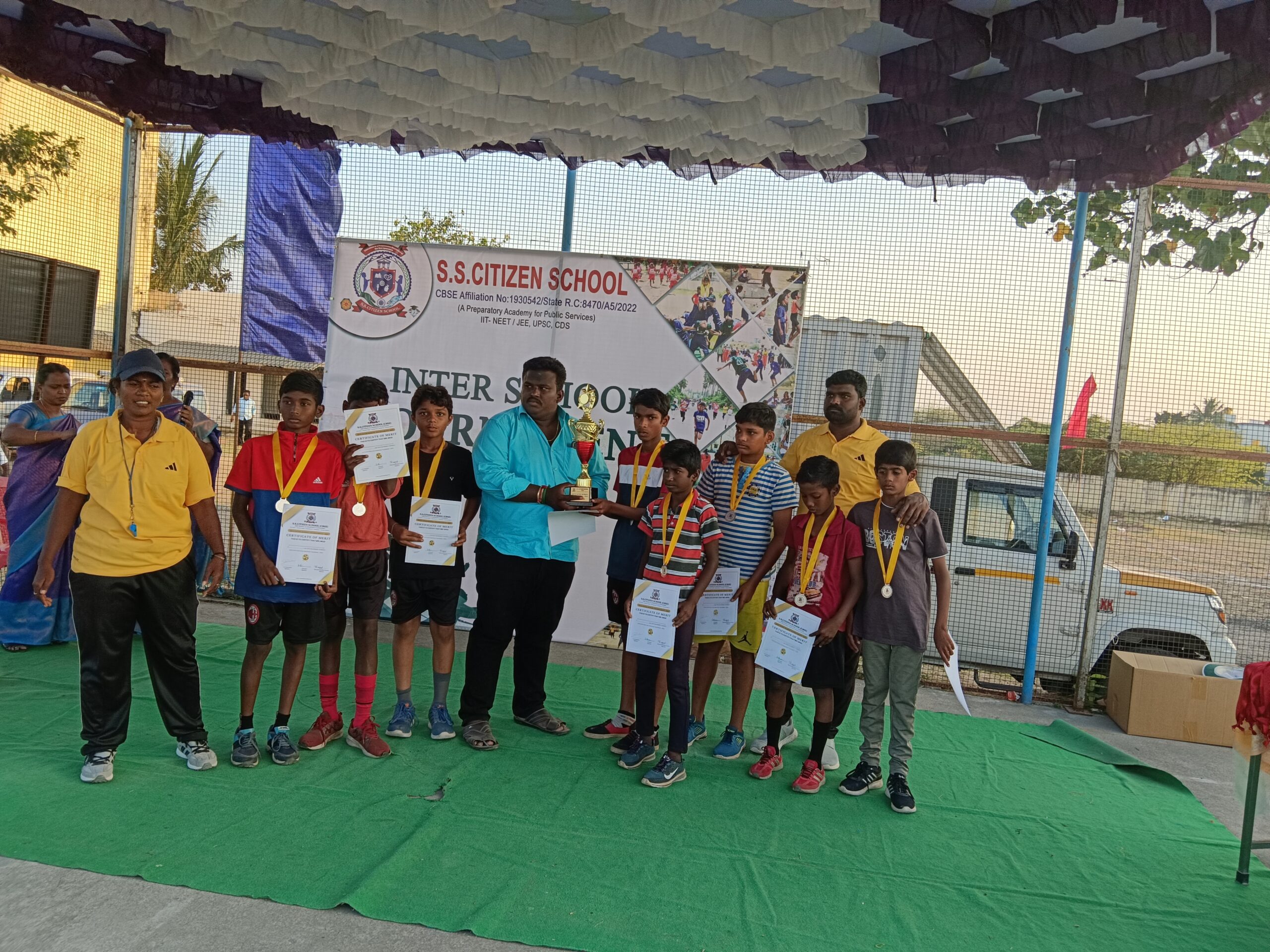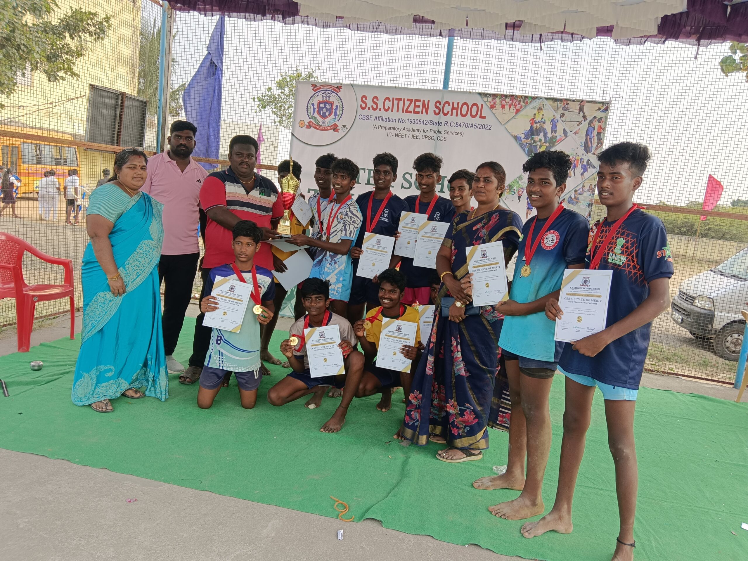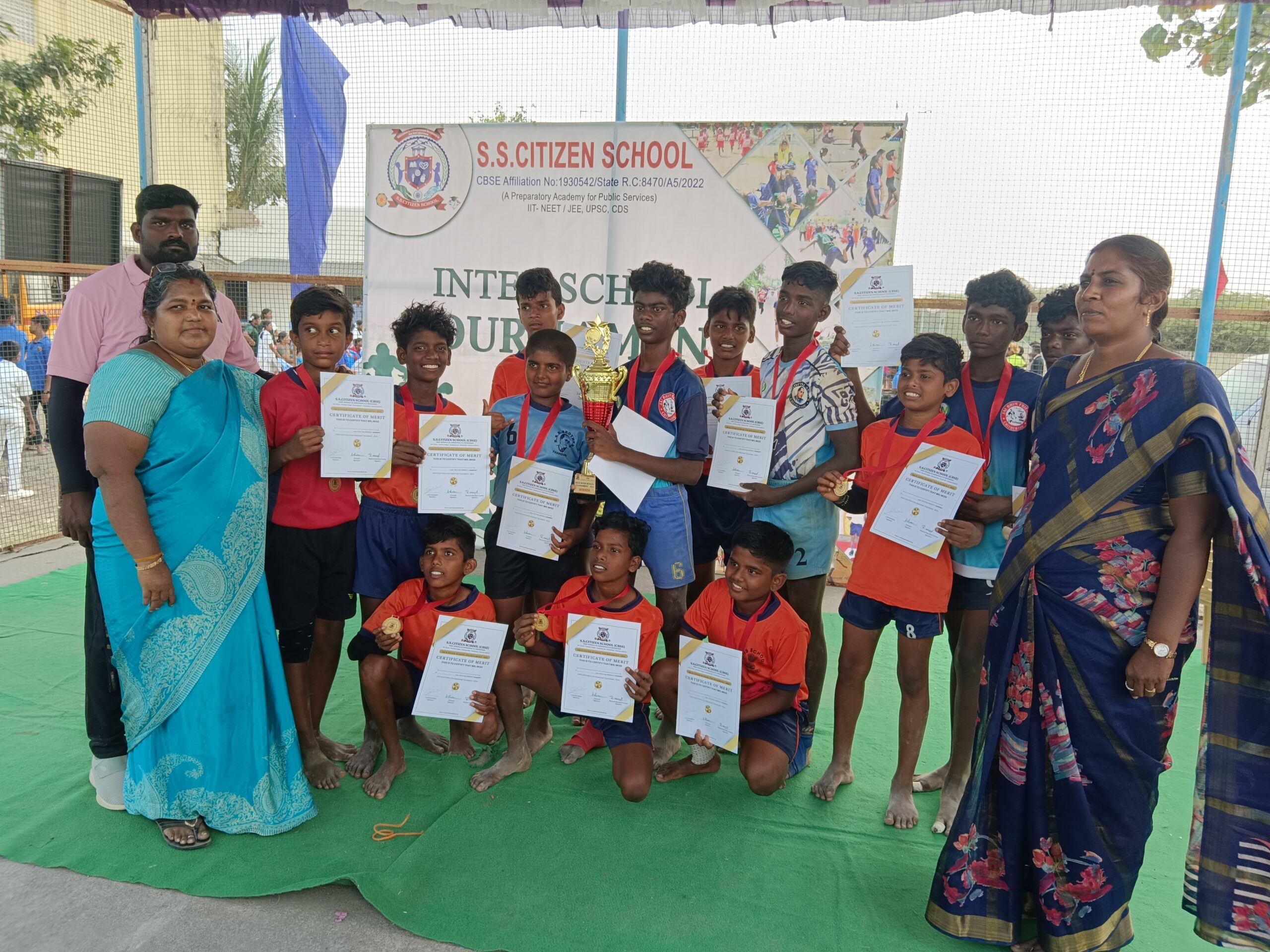 Inter School Tournament - 2024 Physical Education organised an interschool Kabaddi, Football and throwball Tournament (Girls & Boys) in which seven schools participated. The final match was between the School of S.S. Citizen School and the School of Govt Thanduarai School.