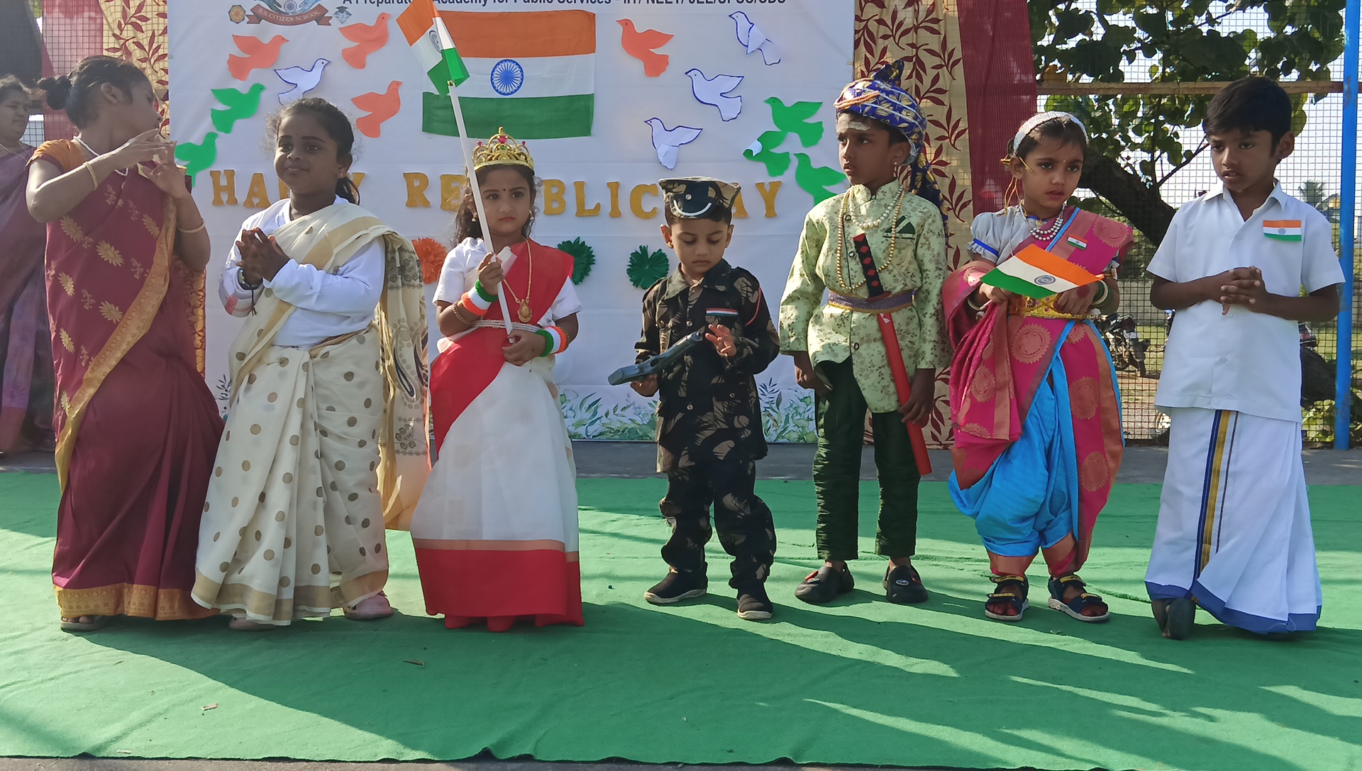 Date: 26 Jan: On January 26th, S.S Citizen School proudly celebrated Republic Day with great enthusiasm and patriotism. Students actively participated in various programs, including a fancy dress competition, speeches, group dance, group song, skit, and a parade, showcasing their talent and love for the nation. The event was a vibrant display of unity, cultural pride, and respect for our country. It was truly an inspiring celebration that instilled the spirit of patriotism among students.