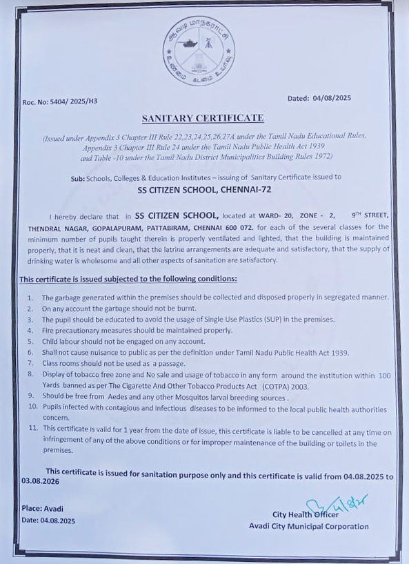 S.S.CITIZEN SCHOOL ADMISSIONS OPEN FOR (2026-2027) Nursery to 9th Grade.