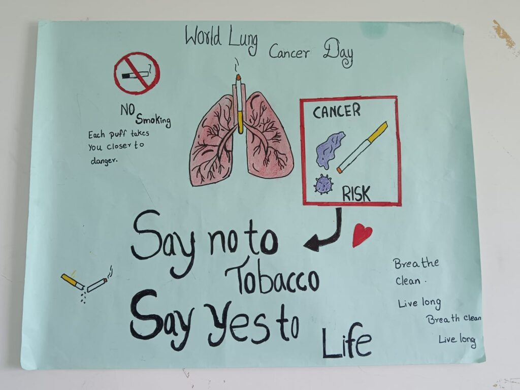Our Schools’ student grade 10 celebrate World Lung Cancer Day on August 1st, 2025, by hosting creative and educational events such as poster contests, awareness assemblies, and student-led skits focusing on lung health and the risks of smoking and pollution. Students engage with creative competitions to design posters or drawings about lung health and prevention.